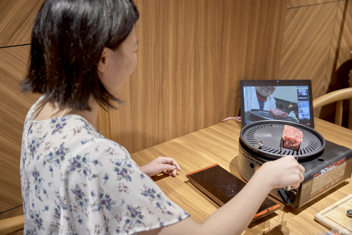 オンラインで参加した記者は、ウェビナーを視聴しながらリアルタイムに自宅で焼肉を楽しんだ。